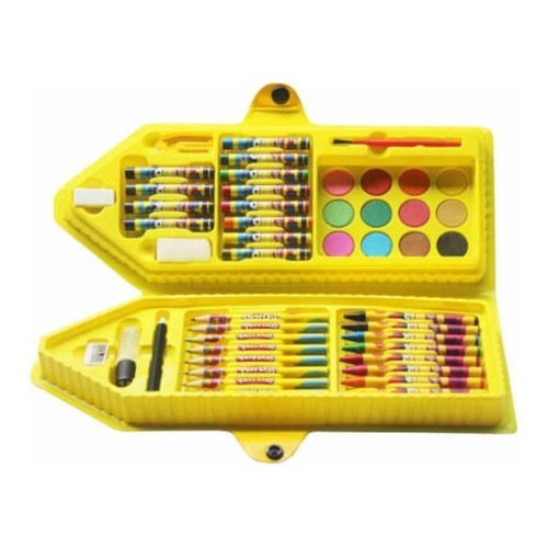 Kutu içerisinde; 12 adet sulu boya, 12 adet pastel boya, 12 adet kuru boya, 8 adet mum boya, kurşun kalem, silgi, kalemtraş, ataç, sünger ve fırça yer almaktadır.