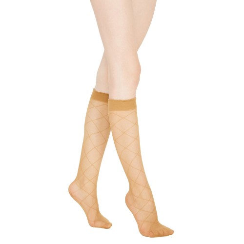 Baklava Desenli Dizaltı Kadın Çorap Ten
