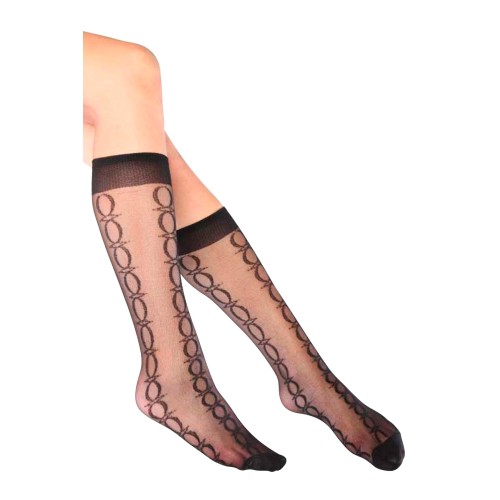 Antik Desenli Dizaltı Kadın Çorap Siyah