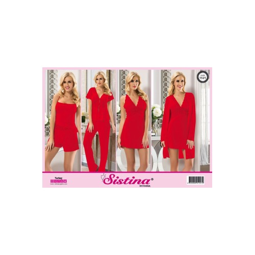 Sistina 1521 Kırmızı penye çeyizlik 6 lı set üstün kalitede üretilmiştir. Azo testinden geçip kanserojen madde içermemektedir. Esnek kumaşı sayesinde vücut hatlarınızı daha belirgin gösterecektir.Kumaş türü : %90 Penye % 10 LikraÜrün içeriği : Gecelik + Sabalık + Atlet+ Şort + Pijama TakımRenk : Petrol YeşiliS>M (36, 38, 40)L>XL (40, 42, 44) bedenlere olmaktadır..