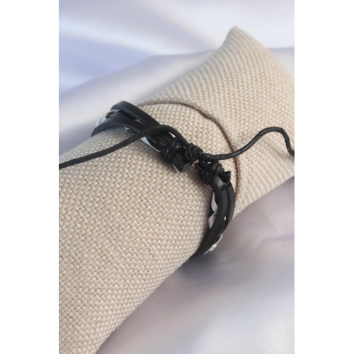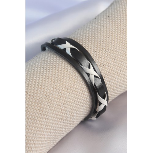 Siyah Beyaz Deri İpli Erkek Bileklik