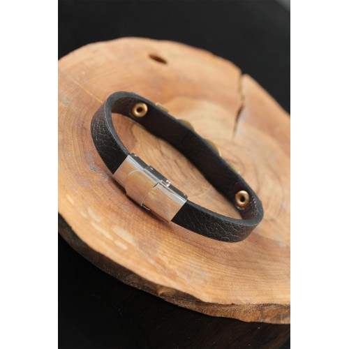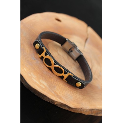 Sezonun şık beyleri için Gold Renk Sonsuzluklu Metal Aksesuarlı Siyah Deri Erkek Bileklik modeli özel olarak tasarlandı.