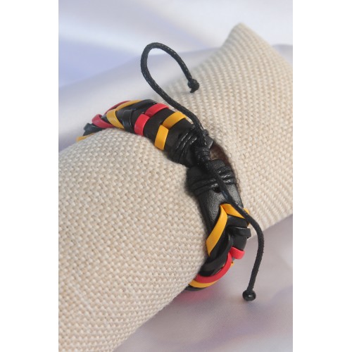 Sarı Kırmızı Siyah Renk Deri İpli Erkek Bileklik