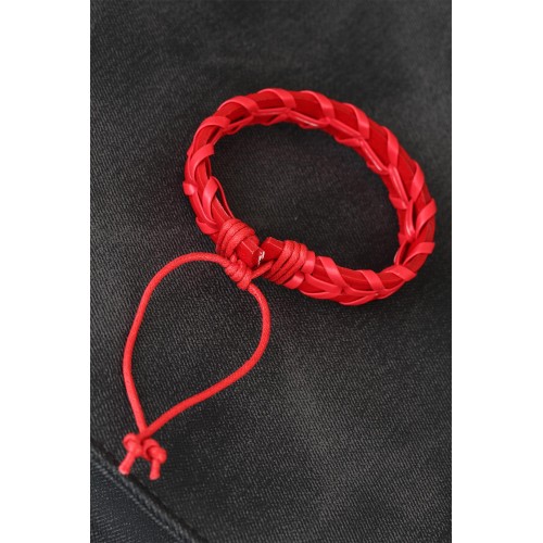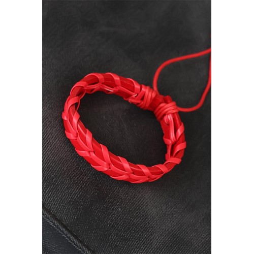 Kırmızı Örgü Deri Erkek Bileklik