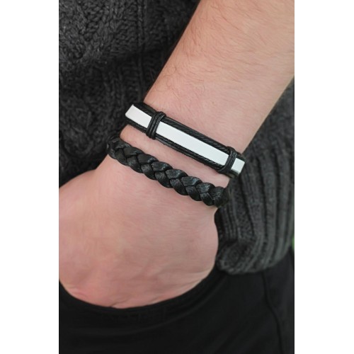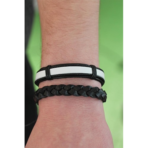 Siyah Beyaz Renk Deri Erkek Bileklik Kombini