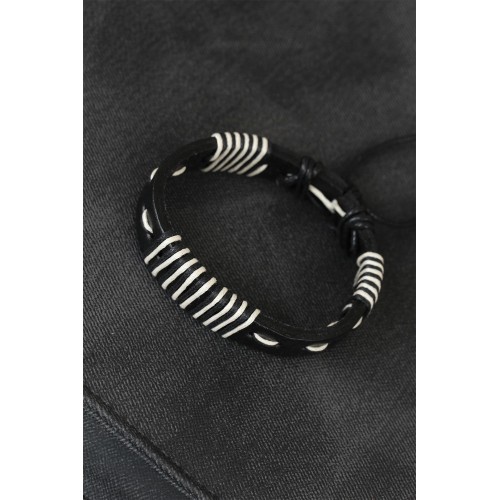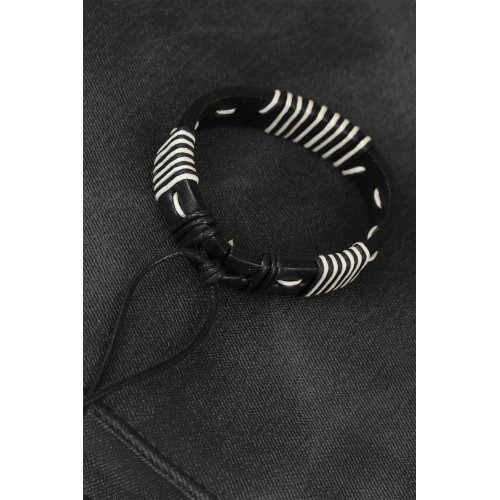 Günlük kombinlerinizi Beyaz İpli Siyah Deri Erkek Bileklik ile tamamlayın.