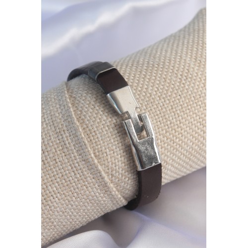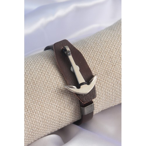 Kahverengi Deri Model Gümüş Renk Çapa Figür Erkek Bileklik