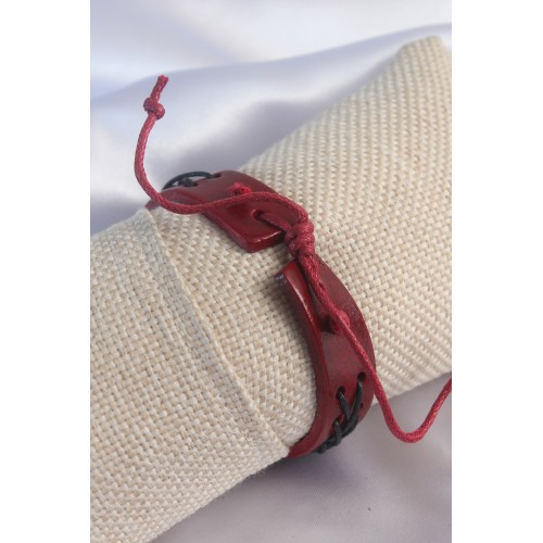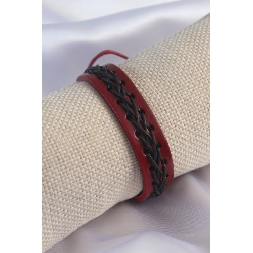 Bordo Renk Siyah İpli Deri Erkek Bileklik