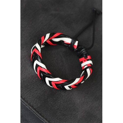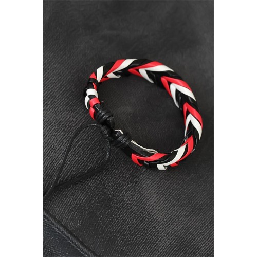 Kırmızı Beyaz Siyah Örgü Deri Erkek Bileklik