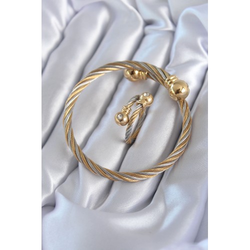 316L Çelik Mix Renk Sarmal Model Erkek Bileklik Yüzük Kombini Altın