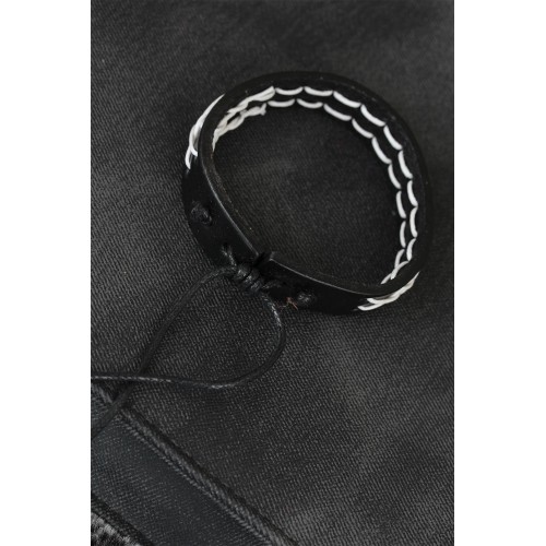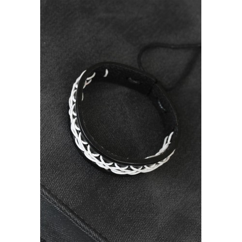 Beyaz Dikişli Siyah Renk Deri Erkek Bileklik