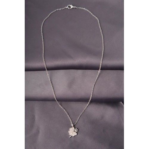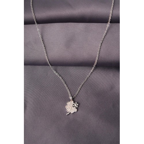 Gümüş Renk Metal Zirkon Taş Yonca Tasarımlı Kadın Kolye