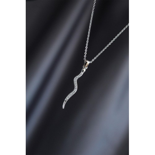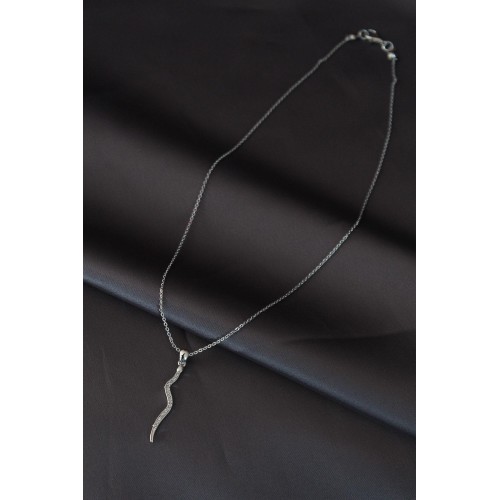Silver Renk Metal Zirkon Taşlı Şimşek Kolye
