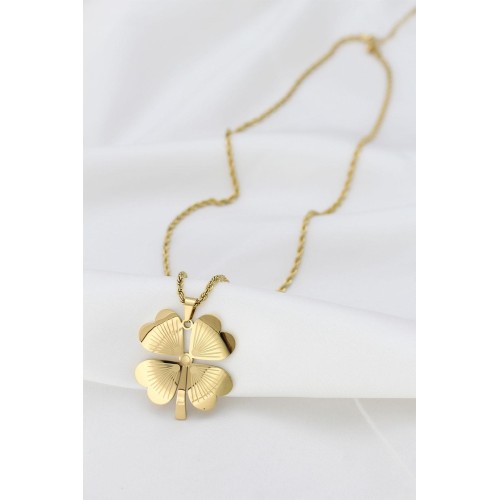 Çelik Gold Renk Büyük Boy Yonca Kolye