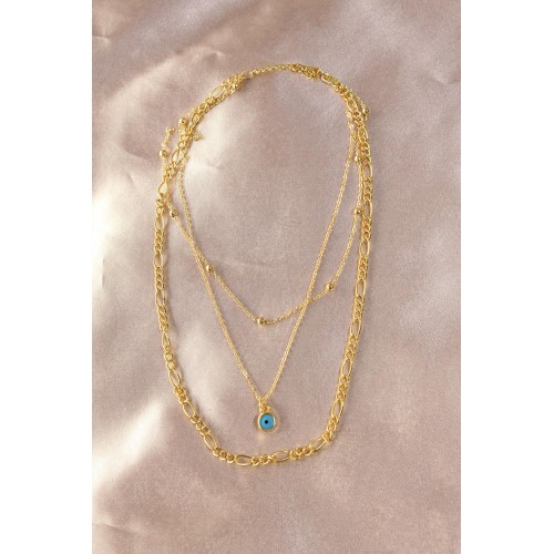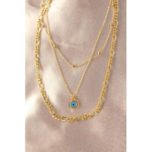Gold Renk Metal Nazar Boncuk Detay Çoklu Kadın Kolye
