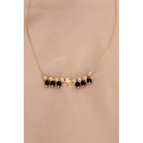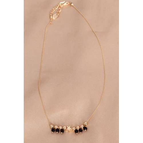 Gold Renk Metal Minimal Yıldız Siyah Boncuk Detaylı Kadın Kolye