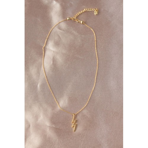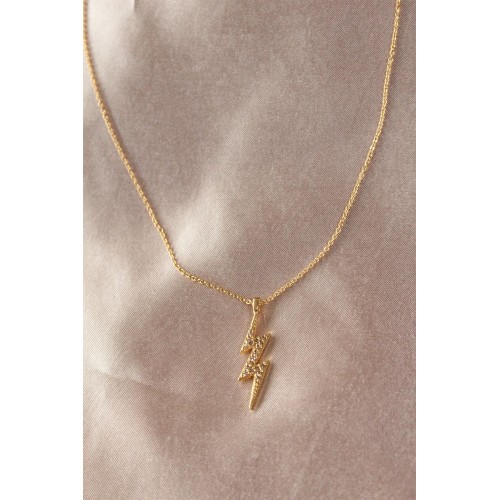 Gold Renk Metal Zirkon Taş Şimşek Detaylı Kadın Kolye