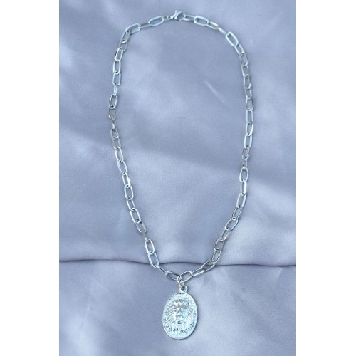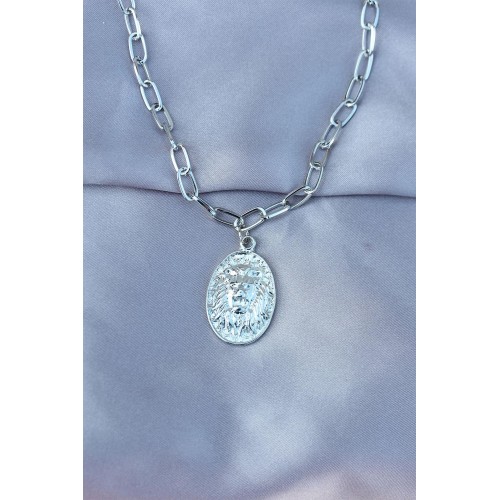 Gümüş Metal Aslan Figürlü Madalyon Kolye
