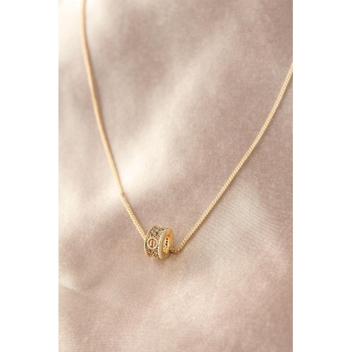 Gold Renk Metal Zirkon Taş Oval Cartier Tasarımlı Kadın Kolye