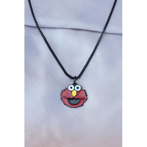 Kurabiye Canavarı Elmo Tasarımlı Siyah Zincirli Erkek Kolye