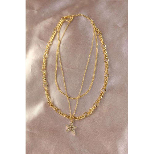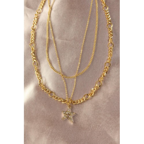 Gold Renk Metal Zirkon Taşlı Yıldız Detay Çoklu Kadın Kolye