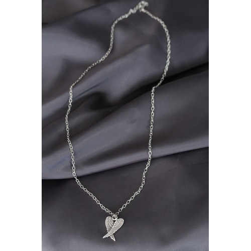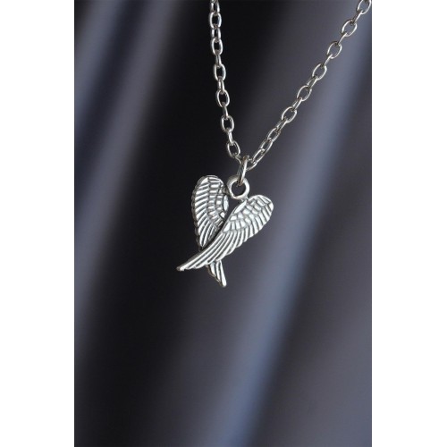 Kanat Model Gümüş Renk Metal Zincirli Erkek Kolye