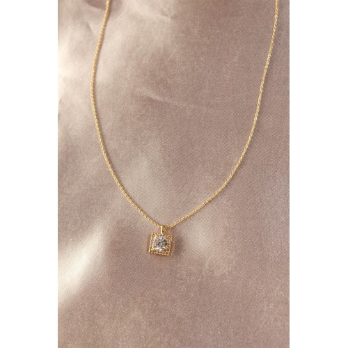 Gold Renk Metal Zirkon Taş Baget Tasarımlı Kadın Kolye