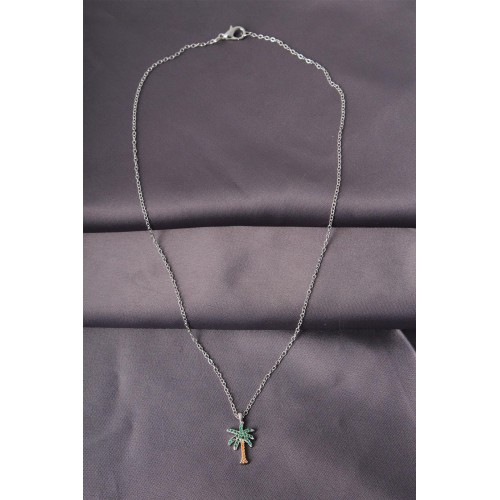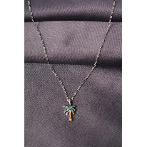 Gümüş Renk Metal Zirkon Taş Palmiye Ağaç Tasarımlı Kadın Kolye