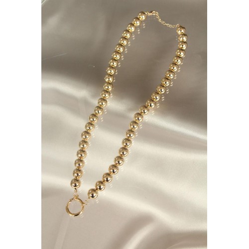 Trend Altın Renk Boncuklu Tasarım Çelik Kadın Kolye