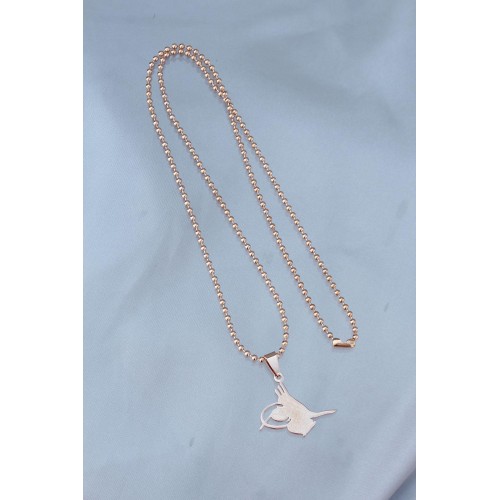 Çelik Uçlu Tuğra Tasarımlı Rose Renk Zincir Kolye