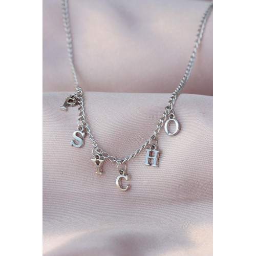 Yeni Sezon Psycho Yazılı Gümüş Renk Sallantılı Kadın Kolye