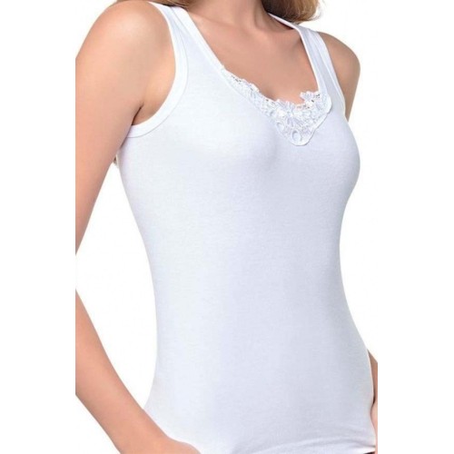 Mevsim 6'lı Beyaz Openet Penye Geniş Askı Güpürlü Atlet 30501