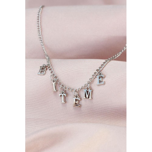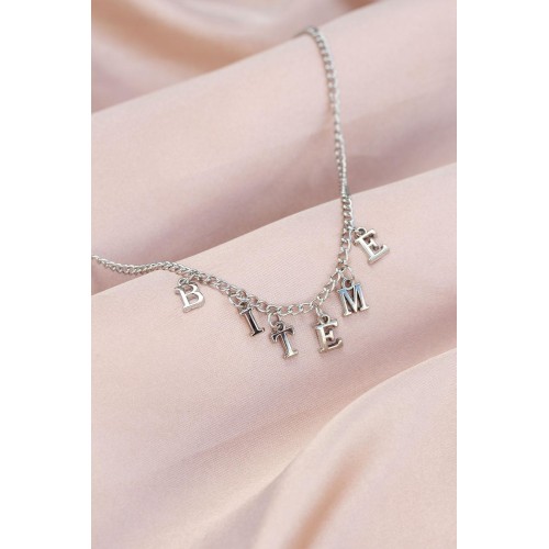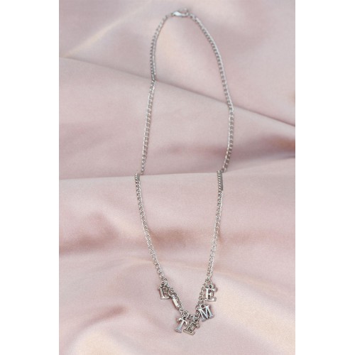 Yeni Sezon Biteme Yazılı Gümüş Renk Sallantılı Kadın Kolye