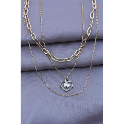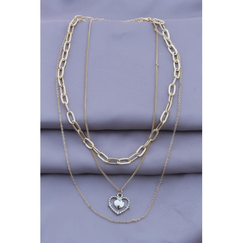 Kalp Figürlü Gold Metal Kombin Kadın Kolye