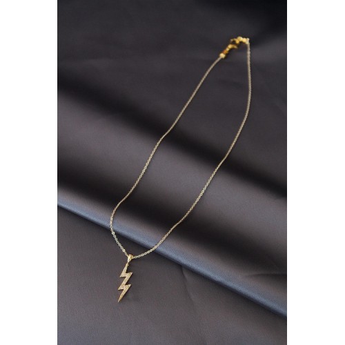 Gold Renk Metal Zirkon Taşlı Şimşek Kolye