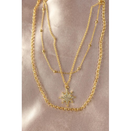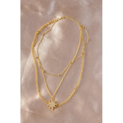Gold Renk Metal Zirkon Taş Yıldız Detay Çoklu Kadın Kolye