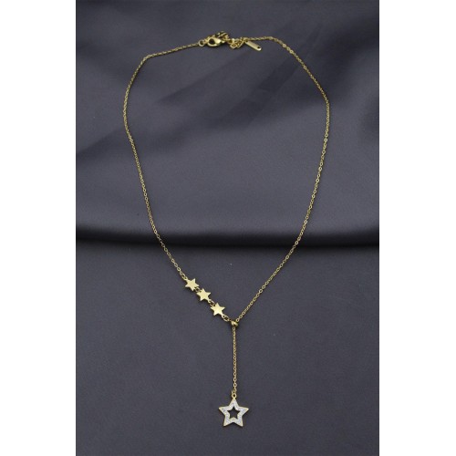 Çelik Altın Renk Zirkon Taşlı Yıldız Tasarımlı Kadın Kolye