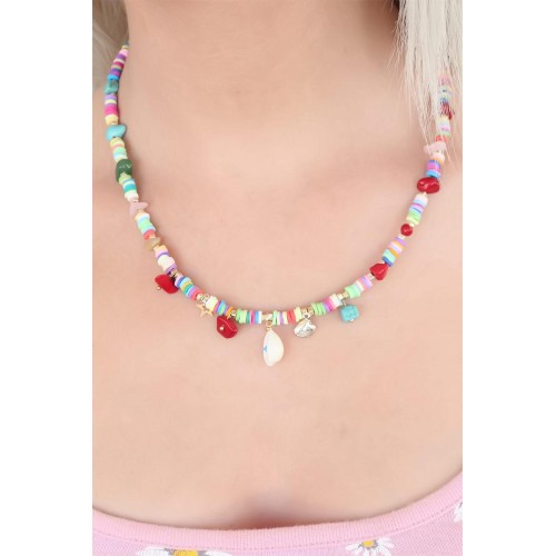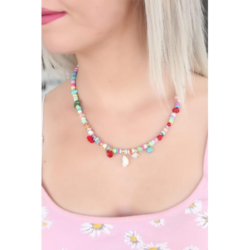 Yaz aylarında kombinlerinizi sezon trendi Renkli Boncuklu Kadın Kolye ile tamamlayın.
