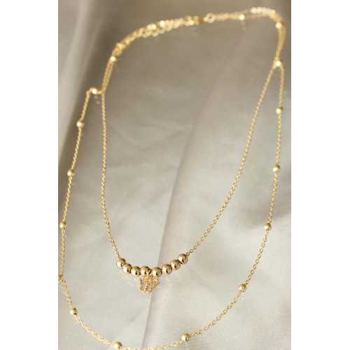 Kelebek Detaylı Çift Zincir Gold Metal Kadın Kolye