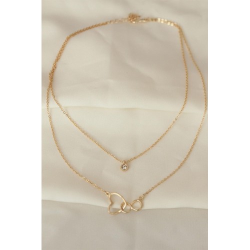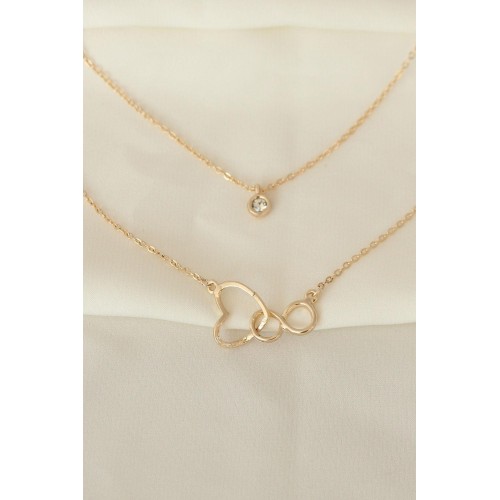 Kalp ve Sonsuzluk Model Zirkon Taşlı Gold Metal Zincirli Kolye