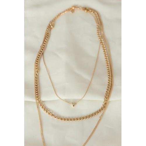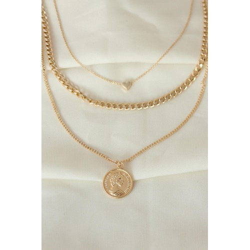 Elizabeth Model Gold Renk Metal Zincirli Çoklu Kolye