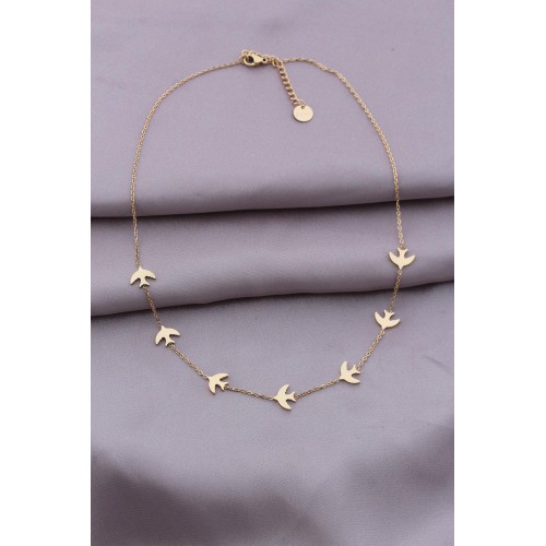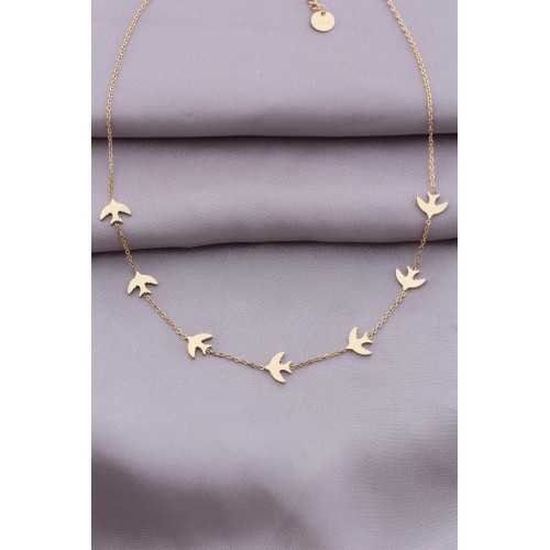 316L Kararmaz Çelik Kuş Figürlü Gold Renk Kadın Kolye
