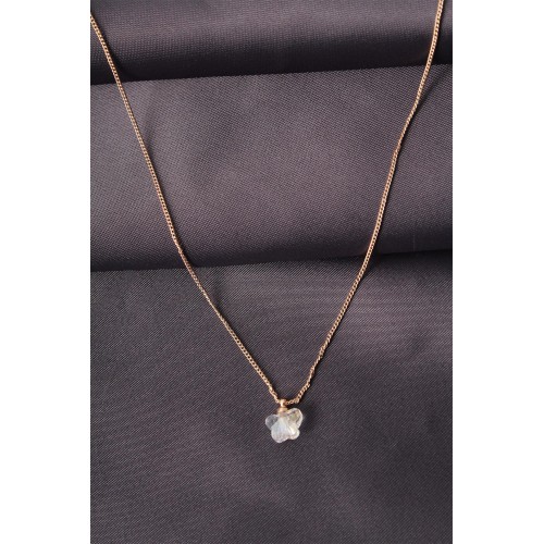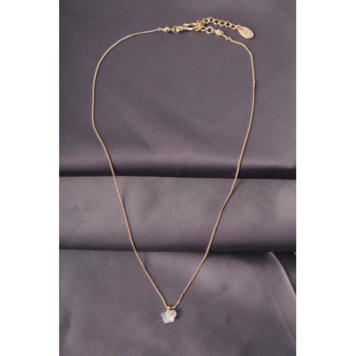 Altın Renk Metal Zirkon Taşlı Beyaz Minimal Kelebek Detaylı Kadın Kolye