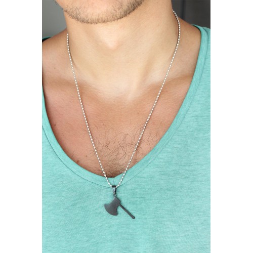 Tarzınızı Siyah Renk Metal Balta Uçlu Top Zincirli Erkek Kolye ile detaylandırın.