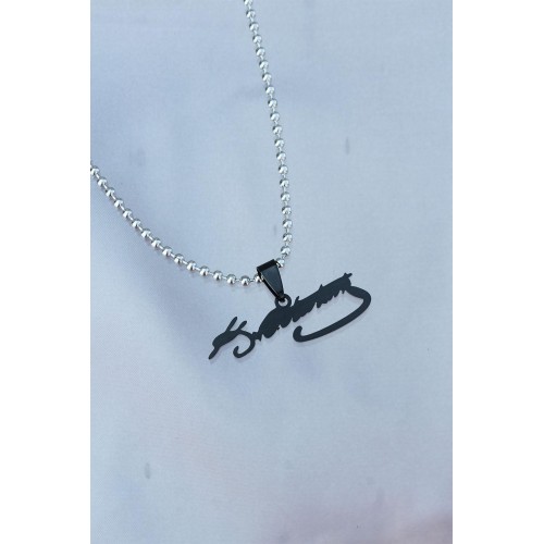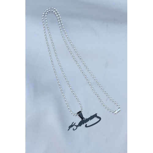 Siyah Çelik Uçlu Atatürk İmzalı Gümüş Renk Zincir Kolye
