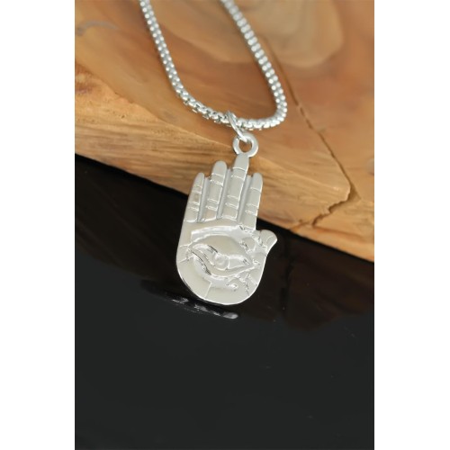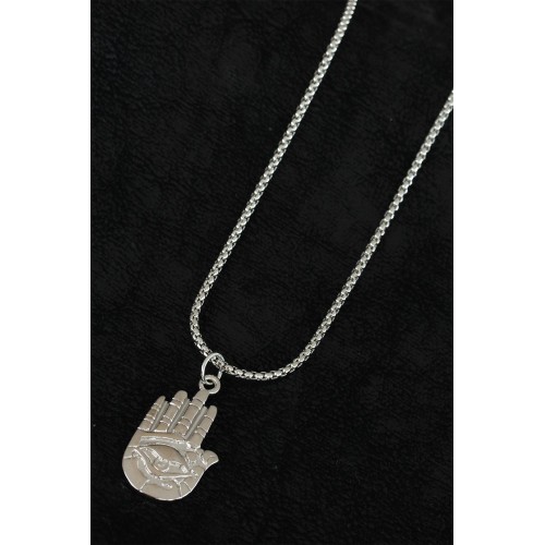 Fatma Ana Eli Tasarım Silver Renk Zincirli Erkek Kolye