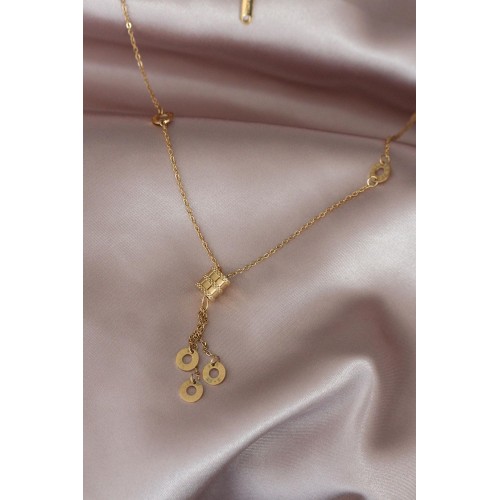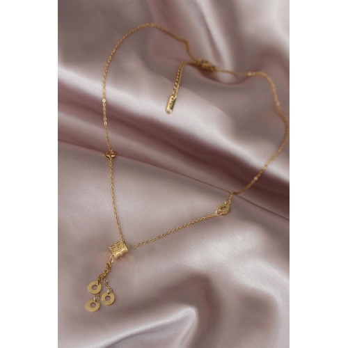 Çelik Roma Rakamlı Tasarımlı Gold Renk Kadın Kolye