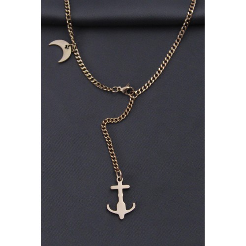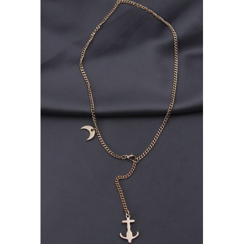 Çelik Rose Renk Çapa Tasarımlı Kadın Kolye