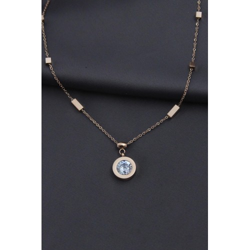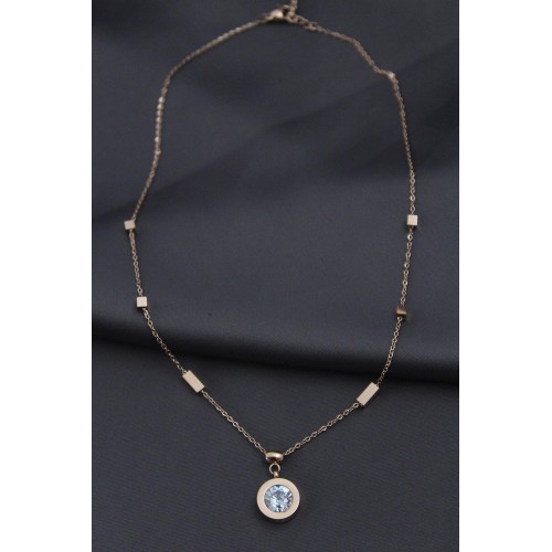 Çelik Rose Renk Kristal Taşlı Oval Tasarımlı Kadın Kolye