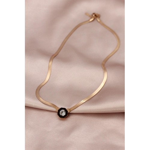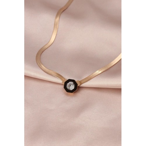 Çelik Rose Renk Siyah Mineli Zirkon Taşlı İtalyan Zincir Kolye